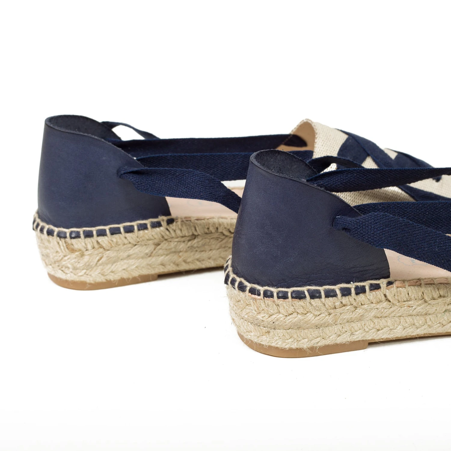 ESPADRILLES POUR FEMME DE COULEUR BLEU MARINE AVEC TALON EN CUIR DE VACHETTE , TIGE EN TISSU, OUVERTES SUR LES CÔTÉS, TALON COMPENSÉ DE 3 CM ET PLATE  -FORME AVANT DE 2 CM. ESPADRILLES CONFORTABLES AVEC LACETS. SEMELLE INTÉRIEURE EN CUIR CONFORT GEL ET SEMELLE EN CAOUTCHOUC ANTIDÉRAPANTE. PROFITEZ DE LA QUALITÉ DE CES CHAUSSURES FABRIQUÉES EN ESPAGNE DE FAÇON ARTISANALE. COMMANDEZ VOS CHAUSSURES CONFORTABLES ONLINE ET ASSOCIEZ MODE ET CONFORT.