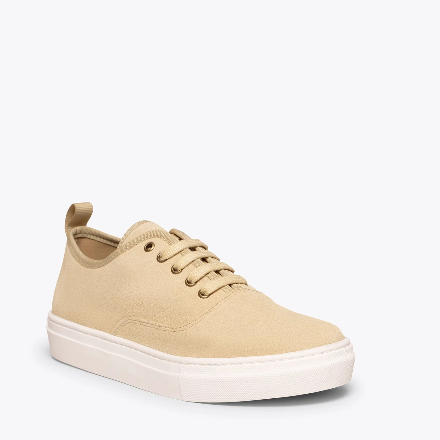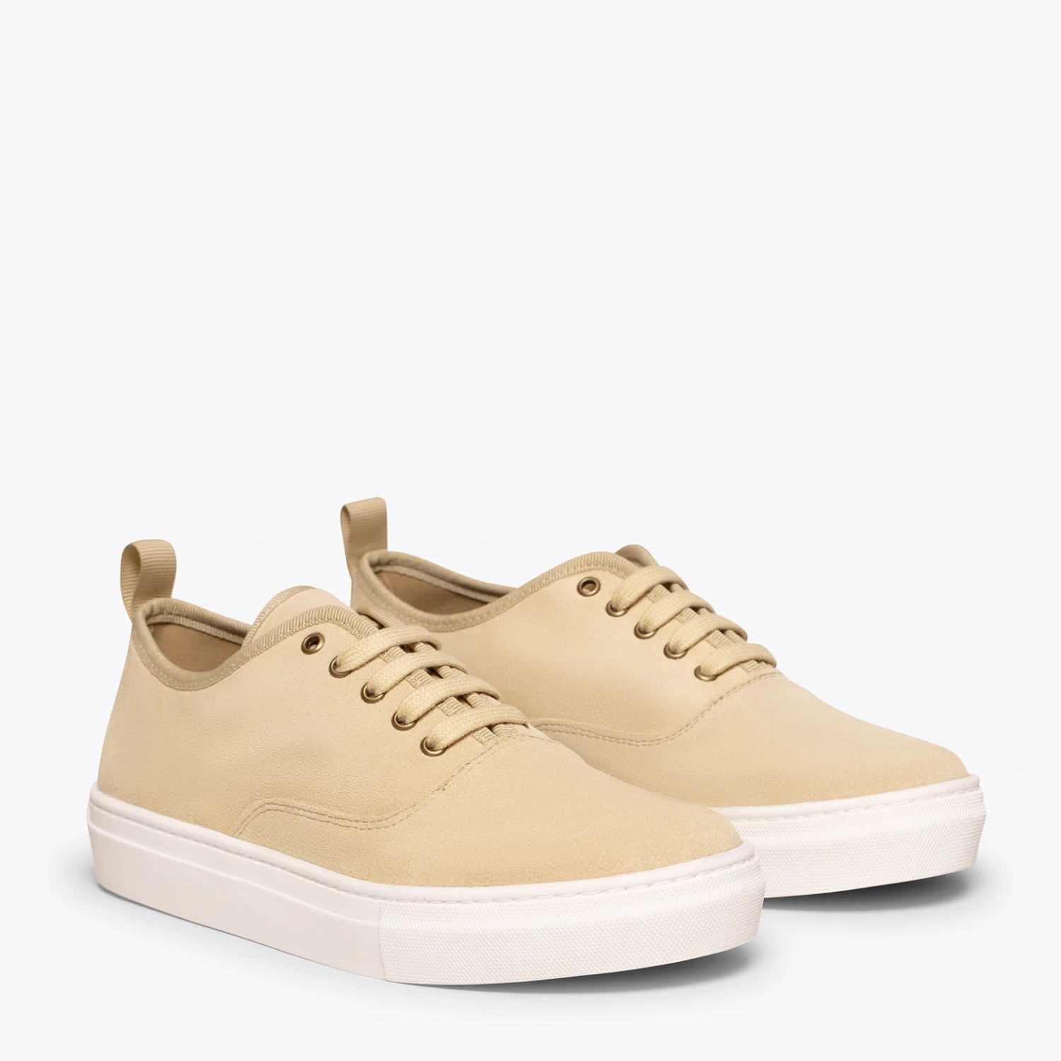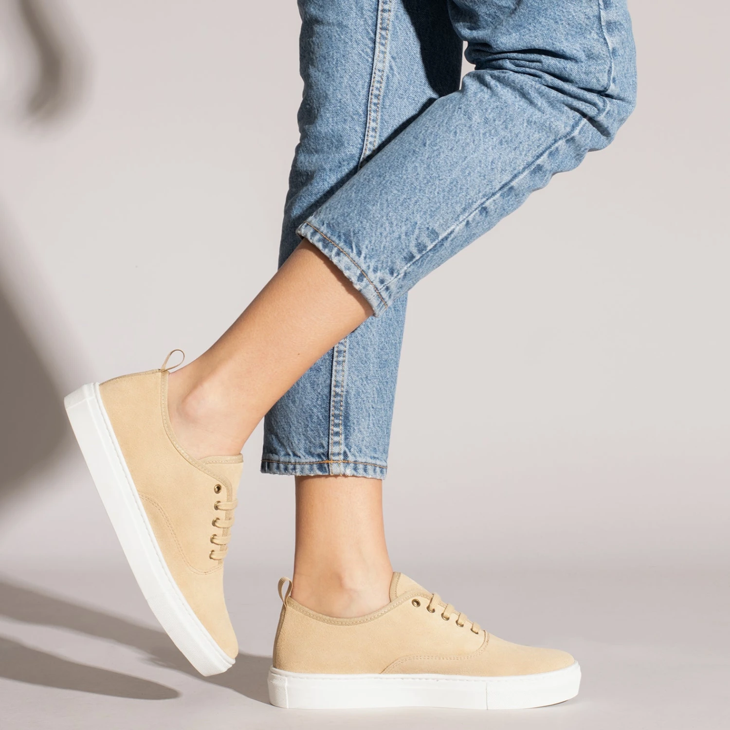 Chaussures BEIGE avec plateforme en cuir Nubuck. Des sneakers Ă lacets parfaites pour ce printemps Ă©tĂ©. C’est un design intemporel qui se combinera Ă n’importe quel look, que ce soit avec votre jean prĂ©fĂ©rĂ© ou une jupe imprimĂ©e. Ces chaussures Ă plateforme ont une semelle intĂ©rieure amovible en cuir Memory Absorber Foam, qui s’adapte Ă votre pied Ă chacun de vos pas. De plus, elles sont faciles Ă enfiler, grâce Ă la bande en tissu Ă l’arrière.
