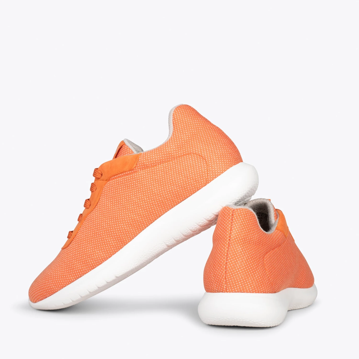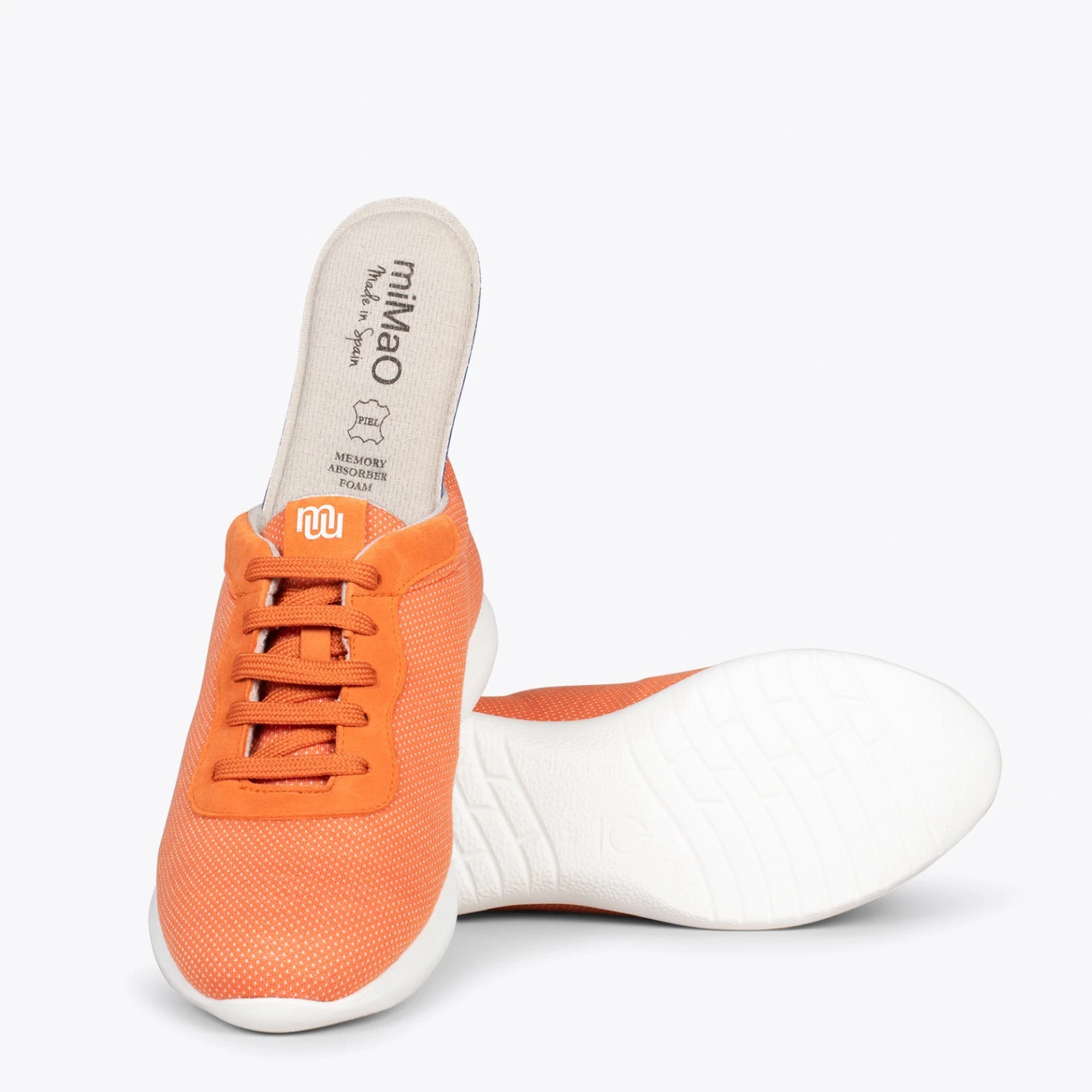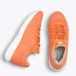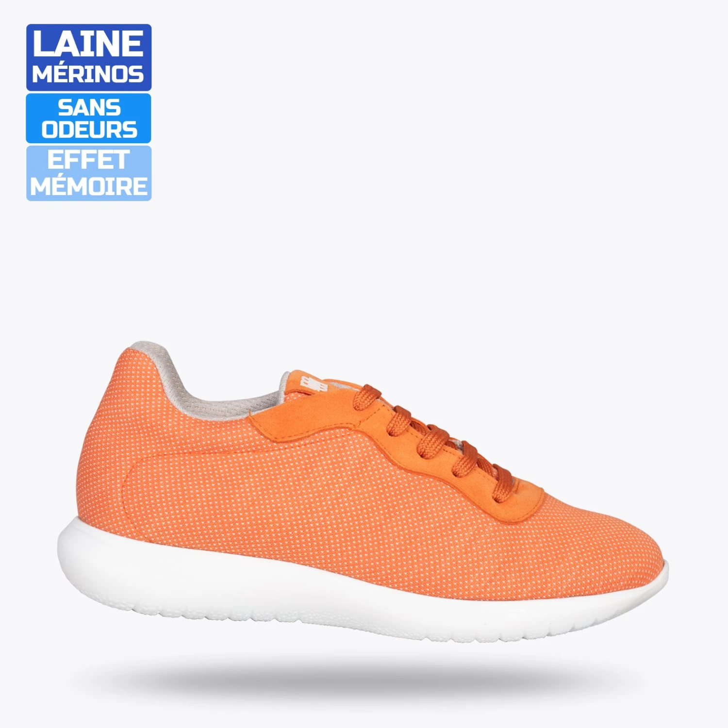 Ces baskets en couleur ORANGE sont fabriquées en laine mérinos et sont parfaites pour la saison Printemps-Été 2023. La semelle extérieure est très légère et la languette porte le logo miMaO en caoutchouc. Vous pouvez les porter sans chaussettes grâce à leur doublure en fibre de bambou.