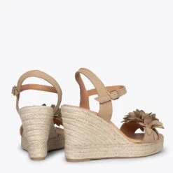 ZAHARA – Espadrilles Hautes Avec Fleurs TAUPE